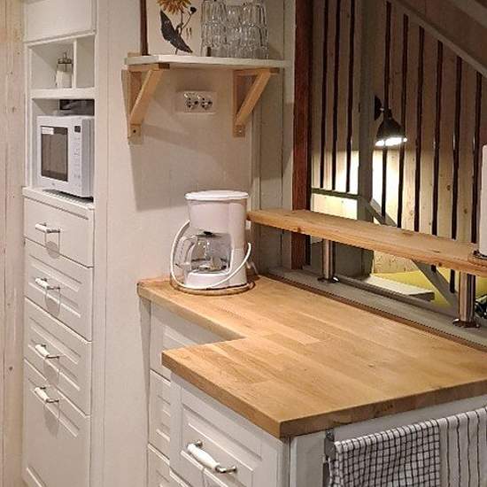 Atterfallhuset ligger lite avskilt, nära skogen och med en liten terrass. Litet men fullt rustat kök med rymliga arbetsytor. I vardagsrumsdelen finns en bekväm soffa som även är en bäddsoffa. TV ingå + basutbud kanaler samt internet. Sovloft med rymlig säng 1,80 m. Byrå samt garderob för kläd förvaring. Hel kaklat badrum med rymlig duschkabin. Tvättmaskin med kombinerad torktumlare. Tre minuter till busshållplats . Bussen tar ca 40 minuter till Slussen. Serviceavgift för hyresgäst: 489
