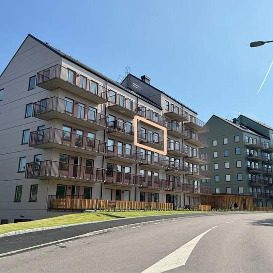 Här erbjuds en fin, välplanerad och nyproducerad hyresrätt med balkong i sydväst på 7 kvm. På planritningen och bilderna kan du se i viket hus samt vart i huset lägenheten är belägen. Köket har luckor och lådor i stilrent vitt och är utrustad med diskmaskin, häll, moderna vitvaror, stänkskydd i vitt kakel och plats för mikrovågsugn. Badrummet har klinker i svart, kakel i vitt och badrumsskåp med belysning. Här finns även tvättmaskin och torktumlare. På vinden alternativt i källaren finns förråd, och i garaget under byggnaderna finns bil o...