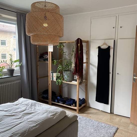 Rummet (ca 13 kvm) har mycket ljusinsläpp och två inbyggda garderober/linneskåp. Rummet är möblerat med en 120-säng, matta, ett mindre skrivbor och en IKEA IVAR-hylla. Hyran inkluderar bredband, gas och el. Lägenheten är totalt 60 kvm och delade utrymmen är hall, kök (utan diskmaskin) och badrum. Lägenheten hyrs ut med preliminärt slutdatum 30 januari 2026 med möjlighet till förlängning, annars gäller en månads uppsägningstid från båda sidor. Lägenheten ligger på andra våningen utan hiss, nära till både Årsta Holmars Naturreservat och Års...