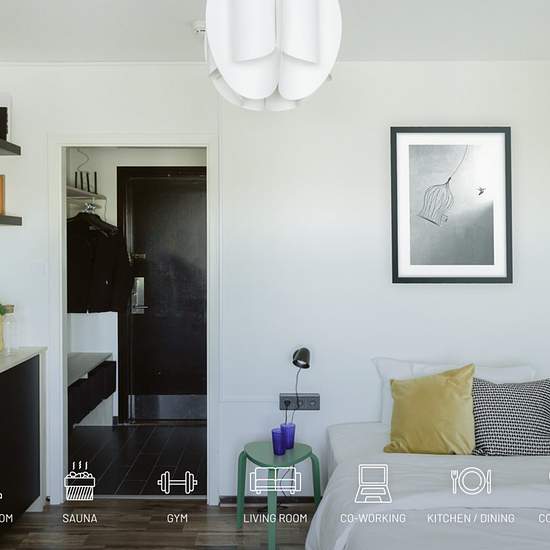Inkluderat i hyran är även tillgång till byggnadens många allmänna utrymmen, totalt över 1000 kvm, där det finns ett flertal faciliteter som är gjorda för att delas mellan hyresgästerna: - Stort, välutrustat kök med tillhörande matsal. - Vardagsrum med TV, biljardbord, pingisbord, brädspel, m.m. - Gym med fast utrustning och fria vikter. - Avgränsat co-working space. - Bastu (bokningsbar) - Två tvättstugor med ett flertal maskiner. Beskrivning En ljus studiolägenhet på 20 kvm, passande för 1 person, med eget badrum. Lägenheten är vid inflyt...