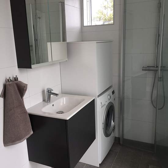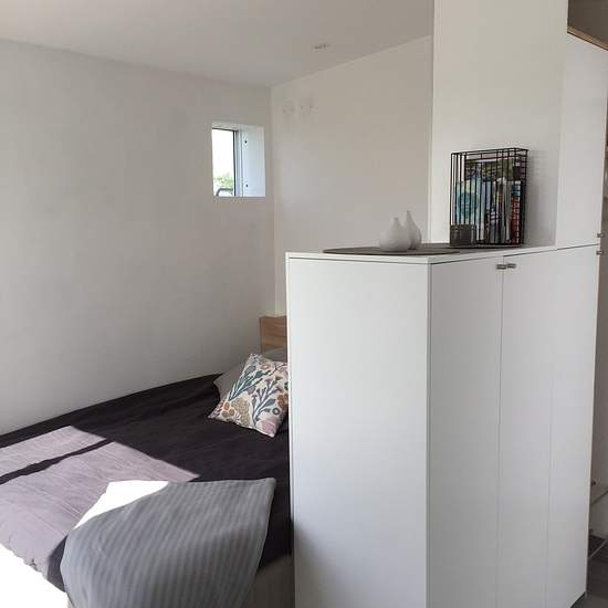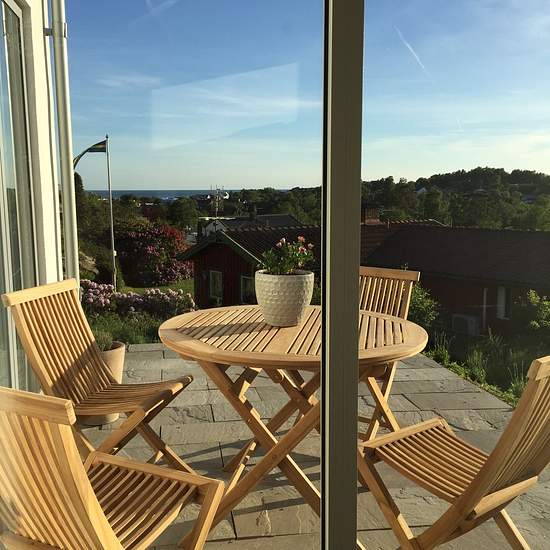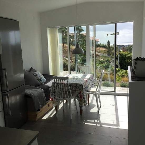 Vi hyr ut vår gäststuga som ligger på en vacker naturtomt med havsutsikt och fantastisk kvällssol. Stugan är arkitektritad och byggdes 2017. Den har hög standard med bl a. golvvärme, modernt kök och badrum. Köket är utrustat med diskmaskin, stor induktionshäll, varmluftsugn, mikrovågsugn, kyl och frys. Badrummet har takdusch, inbyggd toalett och tvättmaskin. Ett stort skjutfönsterparti och en dubbel altandörr kan öppnas upp mot uteplatsen, havet och den fina kvällssolen. Stugan har även en sovalkov med ett stort fönster som vetter mot havet....