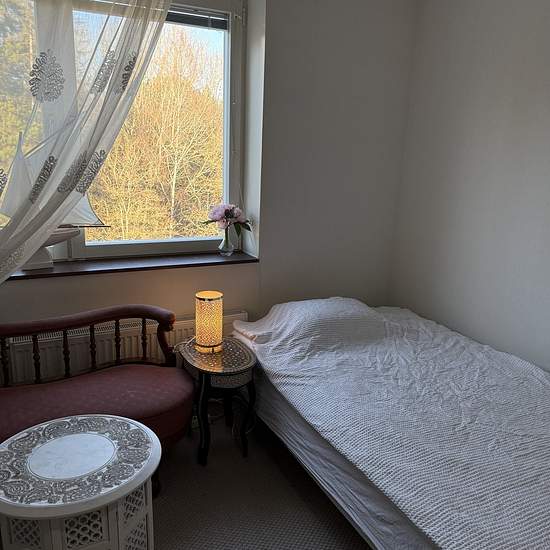 Rum uthyres: Stort, ljust och möblerat rum i Hägstra med vacker utsikt mot skogen. Endast 9 minuters promenad till tågstationen, nära Älvsjöbadet och med buss 143 till Älvsjö station runt hörnet. Rummet är fullt utrustat med säng, garderob, sovbord, TV, litet kylskåp och skrivbord. Hyran inkluderar el, bredband och tillgång till tvättstuga. Perfekt för dig som söker ett lugnt och bekvämt boende med närhet till natur och kommunikationer. Gärna till en kvinna som jobbar eller pluggar , Serviceavgift för hyresgäst: 327
