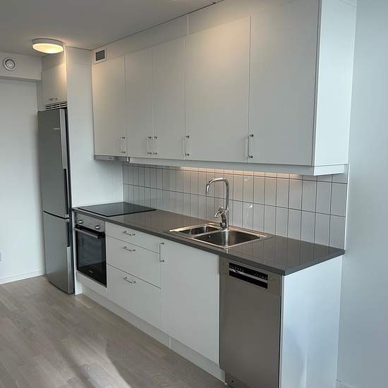 Köken är välutrustade med vita eleganta luckor från HTH. På golvet ligger en vacker ekparkett. Väggar, tak och lister är vitmålade. Badrummen ar helkaklade med stora vita blanka plattor på väggarna och beige klinker på golvet. De är även utrustade med duschvägg i glas, spegelskåp med belysning, kromad handdukstork samt krokar. Badrummen är också förberedda for tvättmaskin och torktumlare. Fastigheten ar rökfri och har en stor grön innergård med gemensam odling, sittyta med pergola Bara några minuters promenad bort ligger Rågsveds tunne...