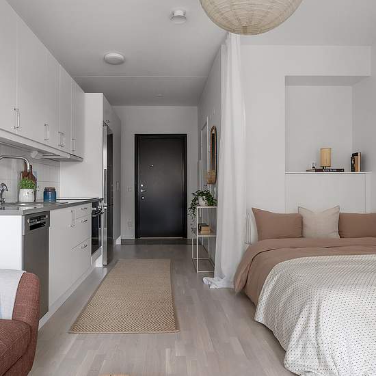 Köken är välutrustade med vita eleganta luckor från HTH. På golvet ligger en vackerekparkett. Väggar, tak och lister ar vitmålade. Badrummen ar helkaklade med stora vita blanka plattor på väggarna och beige klinker på golvet. De är även utrustade med duschvägg i klarglas, spegelskåp med belysning, kromad handdukstork samt krokar och lampa i taket. Badrummen ar också förberedda for tvättmaskin och torktumlare. Fastigheten ar rökfri och har en stor grön innergård med gemensam odling, sittyta med pergola Bara några minuters promenad bort...