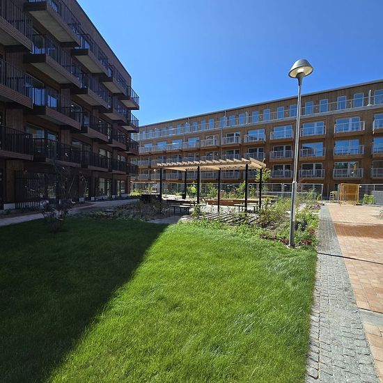 Köken är välutrustade med vita eleganta luckor från HTH. På golvet ligger en vacker ekparkett. Väggar, tak och lister är vitmålade. Badrummen ar helkaklade med stora vita blanka plattor på väggarna och beige klinker på golvet. De är även utrustade med duschvägg i glas, spegelskåp med belysning, kromad handdukstork samt krokar. Badrummen är också förberedda for tvättmaskin och torktumlare. Fastigheten ar rökfri och har en stor grön innergård med gemensam odling, sittyta med pergola Bara några minuters promenad bort ligger Rågsveds tunne...