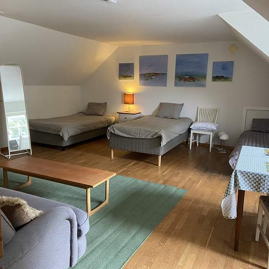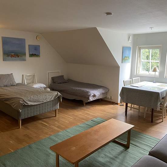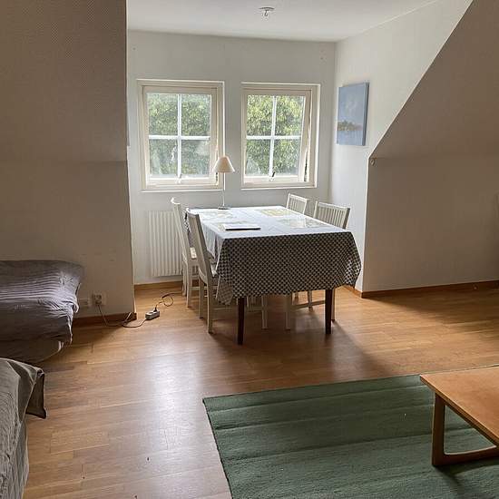 Trevlig lägenhet i två plan på charmig 4-längad hästgård i Everlöv, Blentarp. Fina promenadstråk med skog runt knuten. Ca 1,5 km till buss som går till Veberöd/Lund eller Ystad . Perfekt för den ensamstående som vill bo billigt på landet, jobbar på gård i närheten eller vill bo nära sin häst. Möjlighet att hyra boxplats/lösdrift på gården eller mot hjälp få billigare hyra. El/vatten och internet ingår i hyran. I dagsläget är lägenheten fullt och fräscht möblerad och köksutrustad men kan i viss mån diskuteras beroende på framtida hyresgäst. S...