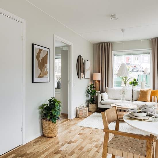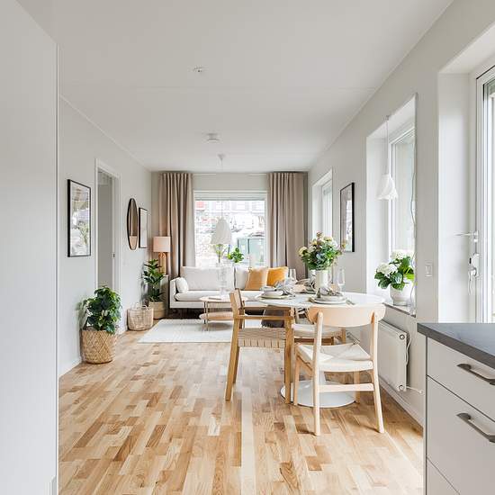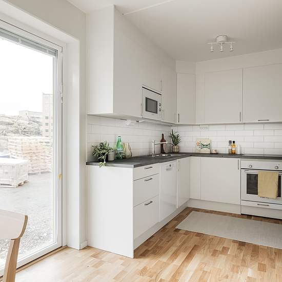 Observera att angivna hyror är inklusive rabatt och gäller 1 april 2025 till 31 december 2025, rabatten gäller endast 1-3 rok. Grundhyran som rabatten dragits ifrån avser 2025 års hyra. Rumsbeskrivning Hall: Alla lägenheter har likvärdig standard men vissa detaljer i utförande är olika i de olika husen. Koncept/utförande i ek: Golv 3-stav Ek, Marbodal kökslucka Vit Aspekt frost, handtag Kurs rostfri cc 128, bänkskiva Perito mörk 626 626 kökslucka. Koncept/utförande i ask: Golv 3-stav Ask, Marbodal kökslucka Vit Aspekt frost, handtag Solo...