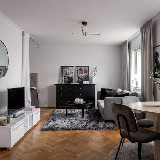 Öppen och smart planlösning. El, vatten och värme ingår i hyran. Uthyrning på grund av jobb på annan ort. Hyrs ut omöblerad. Serviceavgift för hyresgäst: 297