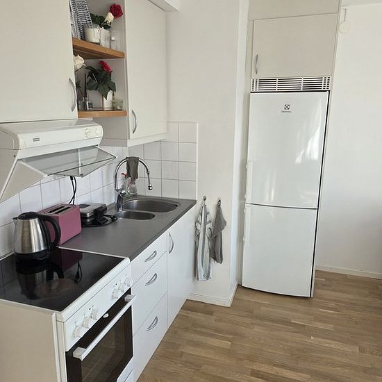 Lägenheten ligger nära affärer och busshållplats och bibliotek. En fin och fräsch bostad. Serviceavgift för hyresgäst: 203