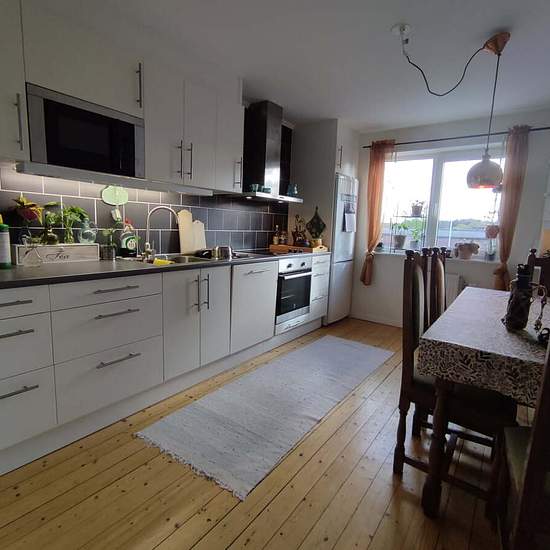 Ljus och fräsch etta med nyrenoverat kök med diskmaskin. Nykaklat badrum och balkong med kvällssol. Nära till både skolbuss och tåg. Varmhyra.