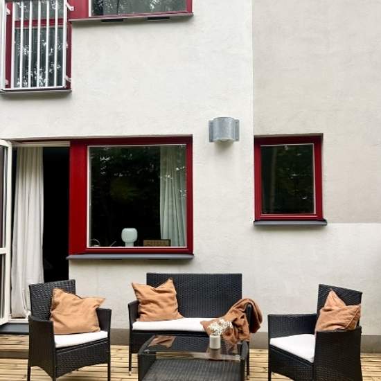 Optimalt planerad 1,5:a med stor uteplats på kanten till Norra Ängby i Bromma. 5 minuters till närmsta tunnelbana, 25 min från City. Nära till grönområde, affärer och centrum.