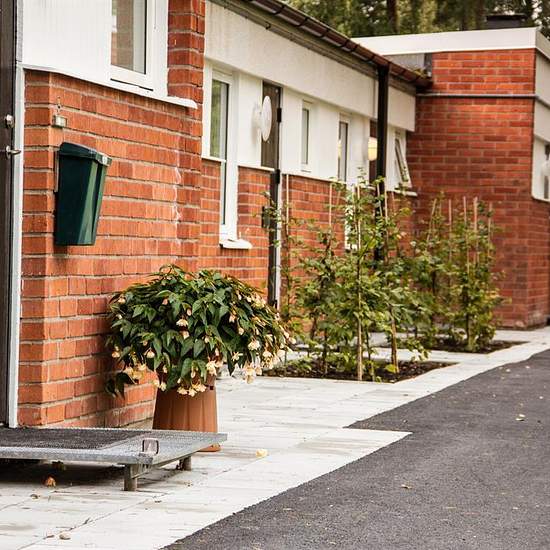 1 rum och kök. Lägenheten är utrustad med diskmaskin. SÖDRA MORÄNVÄGEN 4-14 Enplanshus med trevliga altaner i sydläge och stora gräsytor mellan husen.