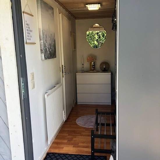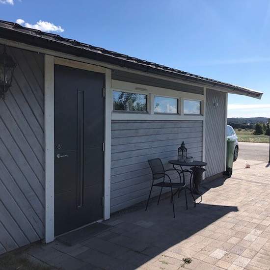 Hej! Vi hyr ut vår fräscha lägenhet som ligger i ett separat fint hus på vår tomt. Lägenheten har ett rum med sovdel och nytt fräscht kök som enbart är 2 år gammalt med snygga materialval. Ligger med utsikt över vackert vidsträckt landskap, 400 meter till stranden och naturliv. Lägenheten är nytapetserad samt har säng, bord, mikro, frys, spis och hylla för att dela av så att köket är avgränsat från sovdelen. Det ingår även tvättmaskin, torktumlare och parkering. Hyresgästen kommer att ha tillträde till den lilla uteplatsen som tillhör huse...