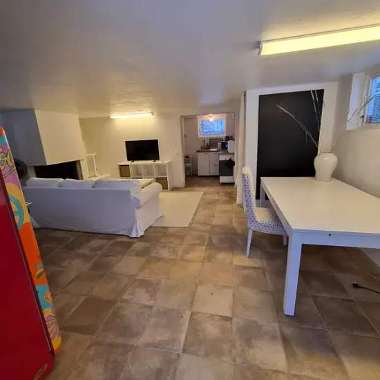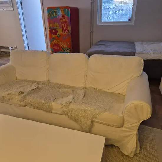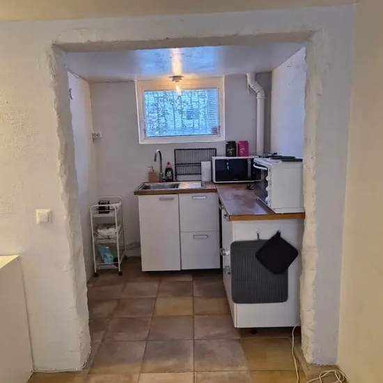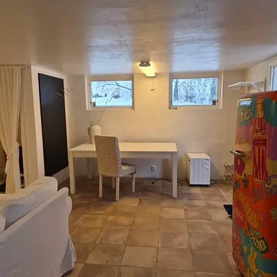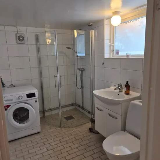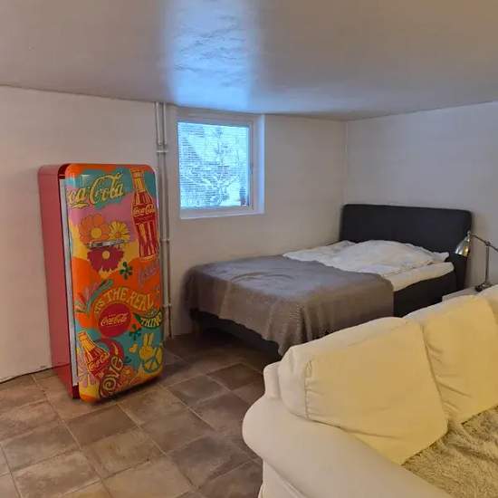 Lägenhet med egen ingång uthyres. Parkering finns. Fristående lägenhet i villa på totalt 41 kvm. Beläget i lugnt och tryggt område i Danderyd med närhet till skog, löparspår, utomhusgym, idrottsplats m.m. Luftigt och möblerat rum med bra TV, badrum, kokvrå och golvvärme. Kokvrån är utrustat med kokplatta med ugn, mikro o lite tallrikar, kastrull, glas mm. Fristående stort Smeg kylskåp. Ljust badrum med dusch, handfat, toalett, tvättmaskin och stor spegel. Stort skrivbord bra för studier samt matbord. Stor walk-in closet med mycket förvarings...