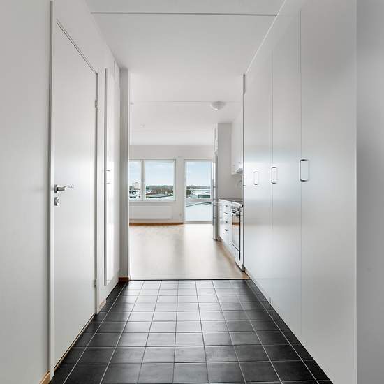 Bostad Hyresförhandling kommer påbörjas efter årsskiftet, viss hyresjustering kan ske. Svanenmärkt producerad bostad med vitmålade väggar och vackra parkettgolv i alla boytor. I hall och badrum är det grå klinker på golv. Köket är utrustat med spis med induktionshäll. Fint ljusinsläpp via fönster och via ett fönsterparti med glas ända ner till golv. Badrummet är helkaklat med vitt kakel och stång för duschdraperi. Badrumsskåpet ovanför handfatet har dörrar i dubbelsidigt spegelglas. Hushållsel samt faktisk egen varmvattenförbrukning ti...