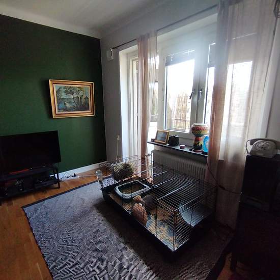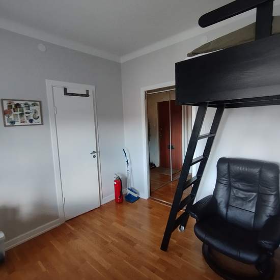 En trevlig lägenhet med balkong in mot innergården. Ingången till lägenheten har en liten hall med en stor garderob med bra förvarings möjligheter. Efter hallen kliver man in i hjärtat av lägenheten, till vänster öppnar vardagsrummet upp med en robust loftsäng längs väggen, där god soffmöjlighet finns undertill. Till höger från hallen finns badrummet med toalett och dusch. Slutligen finner man köket till höger med rymliga arbetsytor, god belysning och balkongdörren till vänster. I hyran ingår •parkering •föreningens tvättstuga Jag har t...