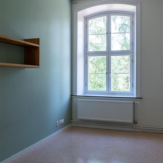 B-kasern har nära till det mesta. Inom en tio minuters promenad kan du komma till centrum, tågstation, busstation, Campus, stormarknad, elektronikaffär, sportaffär, tennisplan, fotbollsplan eller elljusspår. Huset som tidigare varit logement totalrenoverades 2007 och förvandlades till ett studenthem där alla rum har en takhöjd på mer än tre meter och utsikt över den fina regementsparken eller in mot gården. Varje bostad har en egen köksdel samt dusch och wc. På varje våningsplan finns ett möblerat studierum med internet, samt en tvättstuga m...