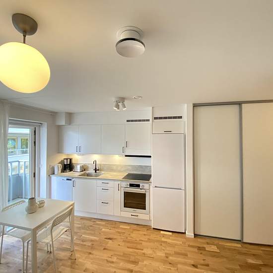 Uthyrning 1 år i taget. Möjlighet till förlängning. Ni kan flytta in idag, lägenhet klar. Välkommen till en modern och välplanerad 1:a i attraktiva Klockelund Strand, ett nybyggt och sjönära område mellan Farsta och Sköndal. Lägenheten är belägen på 1:a våningen i ett nyproducerat flerfamiljshus från 2025, och erbjuder en harmonisk livsstil med utsikt över Drevviken och direkt närhet till naturen. Bostaden har skjutdörrsgarderob och stilrent kök med diskmaskin . Öppen planlösning med plats för både säng, soffa och matbord. Helkaklat badrum...