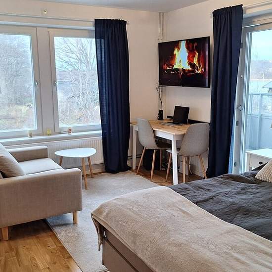 En mysig och välplanerad etta med stor balkong och magisk sjöutsikt Denna exklusiva lägenheten med en jättebalkong bjuder på utsikt rakt över vackra Drevviken! Här får du: En ljus och modern möblerad hem Stilrent kök med diskmaskin, spis, ugn, mikro och kyl/frys Lyxigt badrum med tvättmaskin/torktumlare Balkong på hela 14m2 Bra förvaringsmöjligheter Här bor du i lugna och naturnära Klockelund Strand med badplats, promenadstråk och natur runt hörnet. Samtidigt har du bara några minuter till Farsta Centrum och goda komunikationer till både ...