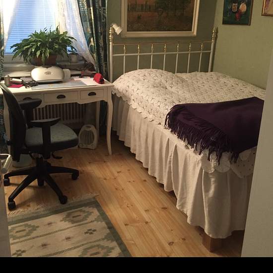 Bostaden ligger i ett mycket lugnt och naturvänligt område i Farsta Strand. Nära sjö där du kan bada, fiska o åka skridskor. Nära till både pendeltåg och tunnelbana. Det tar ca 15 min till T-Centralen. Gratis parkering på gatan. Stort centrum en station bort. Lägenheten har tre och ett halvt rum o kök och ett badrum och en separat toalett. Det finns tvättstuga i en separat byggnad utanför. Du som vill hyra får gärna vara studerande eller ha ett fast jobb. Är du veckopendlar är detta ännu bättre . I hyran ingår el och wifi del i kök, vardag...
