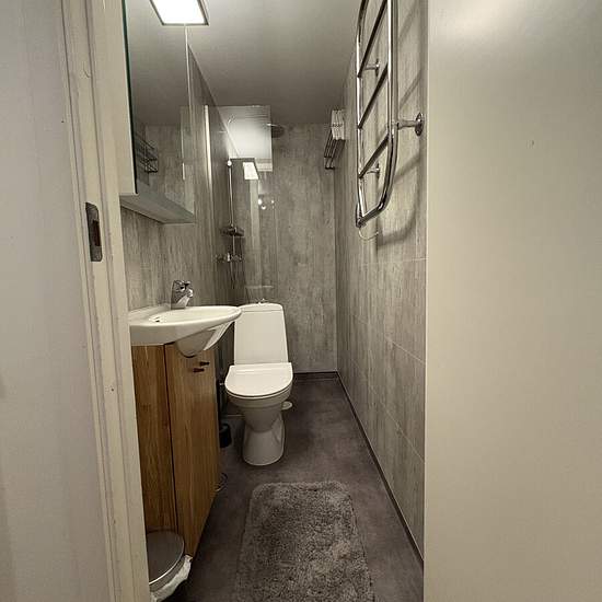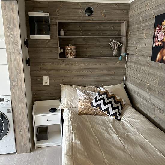 På centrala Frösön, bara ett stenkast från härliga surfbukten och gångbron in till centrala Östersund ligger denna supermysiga lilla etta med sovalkov. Bostaden, som har egen ingång, ligger på nedre botten och har fantastisk utsikt direkt från lägenheten ut mot Storsjön och Östersund. Allrummet och alkoven är helt nyrenoverade med material i toppklass och det egna badrummet har fått en ordentlig uppfräschning med modern standard. Den genomtänkta planlösningen och den smarta möbleringen gör att alla bekvämligheter finns utan att det känns ...