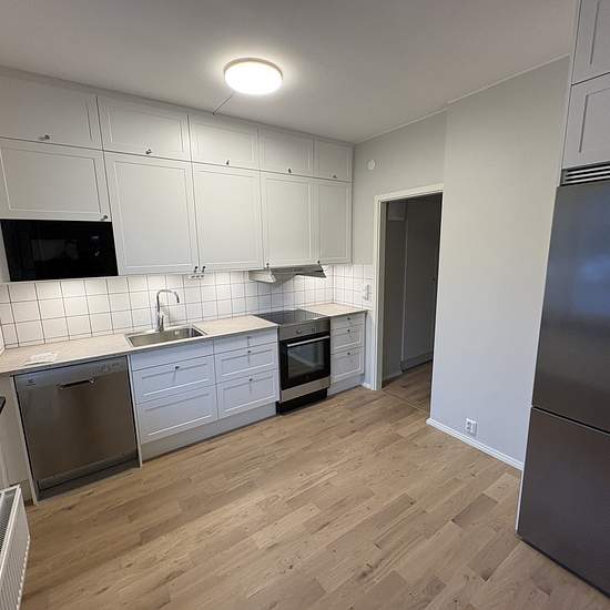 Totalrenoverad funkislägenhet om 1,5 rum och kök. Nytt kök från HTH, vitvaror i rostfritt utförande. Spis med induktionshäll. Genomgående parkettgolv. Generös förvaring i form av garderober samt en klädkammare. Helkaklat badrum med el-värmegolv, duschväggar av glas, kommod under handfat och eluppvärmd handdukstork. Planritningen kan innehålla avvikelser från verkligheten. En smakfullt renoverad lägenhet står redo för en ny hyresgäst. Obs! Hyran avser 2025 års nivå.