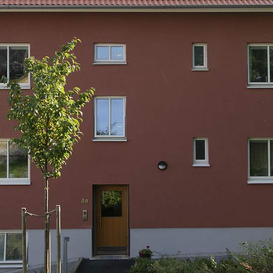 Etta på markplan med egen ingång (En av de vita dörrarna på gaveln i bild 1). Här bor du med närhet till både natur och service. Strax nedanför huset hittar du Danska vägen som är fylld med butiker, restauranger och caféer. Från hållplatsen utanför går bussarna ofta och på 10 minuter tar du dig till Göteborgs centralstation. I närheten finns också grönområden som Skatås och Delsjön och på husets baksida finns grillplats och sittplatser. 2019 genomförde vi en total ombyggnad av fastigheten och lägenheterna är i nyskick. Huset är rökfritt o...