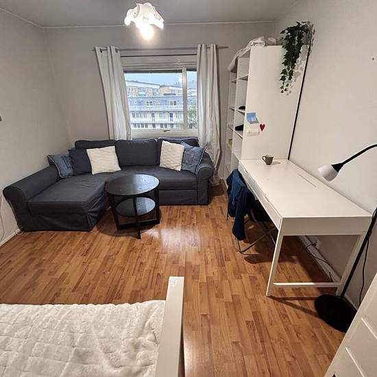 Annonsen gäller även för Veckopendlare. Jag är en kvinna på 55 år, som har en 4-rumslägenhet där jag hyr ut ett separat rum, inkl egen hall o egen toalett. Gästen har egen ingång till sin del av lägenheten. Från den så är det en dörr till en stor hall där det gemensamma köket o badrummet är i anslutning. Gästrummet är 17 kvm, nästan fyrkantigt, och har både en säng och en bäddsoffa som är bekväm att sova i. Det finns även ett skrivbord för den som vill jobba hemifrån, en byrå och ett högskåp med bra förvaringsmöjligheter. I hallen finns e...