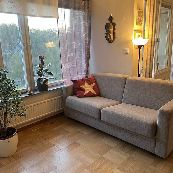 This large room is available from 1st September 2025 A delightful & spacious newly decorated room with lovely view of peace and quiet trees from your window. Yet just blocks from shops, busses and trams. Within walking distance of Liseberg and 10 mins from Central Station via Busses. 60 & 62 busses outside the front door and 5 tram a few blocks away. Rent this room within our 5 bedroom family apartment. We are friendly, warm and welcome you into our home. We respect your personal privacy and appreciate all cultures and beliefs. We rent ou...