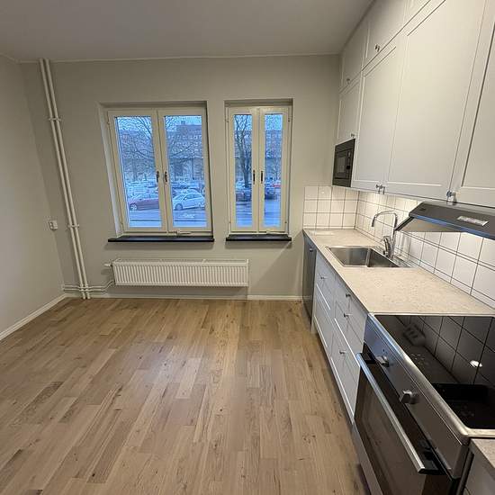 Totalrenoverad funkislägenhet om 1,5 rum och kök. Nytt kök från HTH, vitvaror i rostfritt utförande. Spis med induktionshäll. Genomgående parkettgolv. Generös förvaring i form av garderober samt en klädkammare. Helkaklat badrum med el-värmegolv, duschväggar av glas, kommod under handfat och eluppvärmd handdukstork. Planritningen kan innehålla avvikelser från verkligheten. En smakfullt renoverad lägenhet står redo för en ny hyresgäst. Obs! Hyran avser 2025 års nivå.