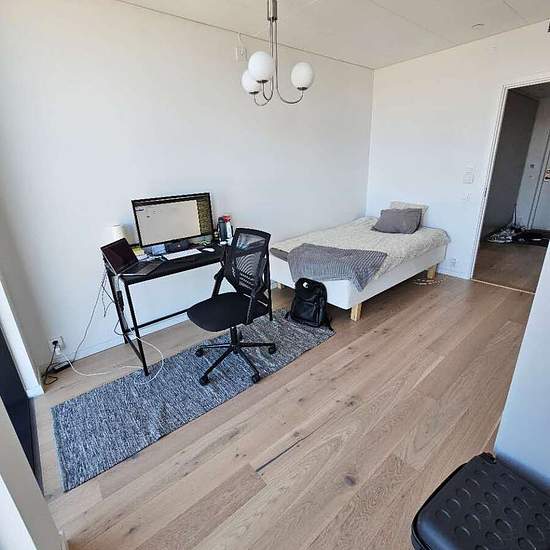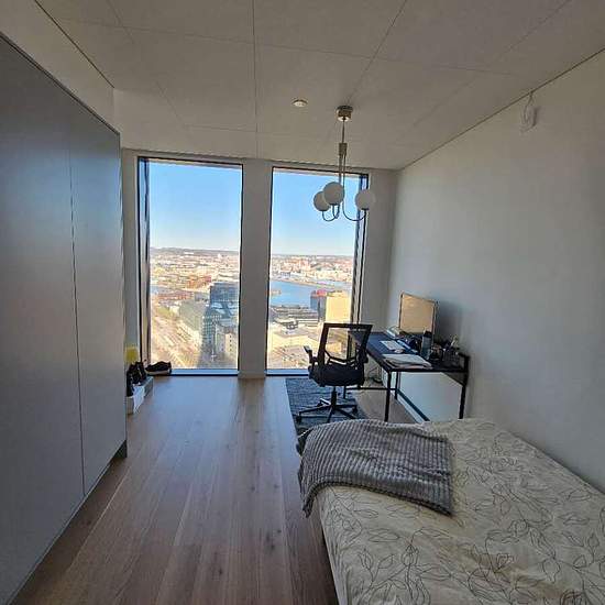 Rum i hörnlägenhet i Karlatornet med stora fönster och fin utsikt. Öppen planlösning med kök i grått, ljus bänkskiva och plats för umgänge. Sovrummet är avskilt med stilrena väggar. Ett fräscht och lyxigt boende. Tillgång till gym som finns i tornet ingår i hyra. Man kan ha tillgång till spa mot betalning. Söker en lugn och välskött person som inneboende. Serviceavgift för hyresgäst: 416