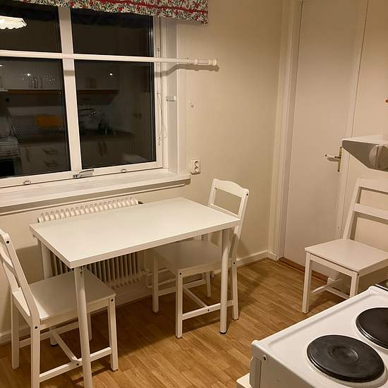 Bostaden är en lägenhet i ett hus på två våningar med fyra lägenheter totalt. Min lägenhet ligger på övervåningen och jag hyr ut det här rummet resten delar du på tillsammans med en annan som hyr ett annat rum. Alltså har ni gemensamt ansvar för badrum och kök. Tvättstuga finns i källaren och där kan man sätta upp sig på tid. I hyran ingår el vatten möblering även köksutrustning finns komplett. Lägenheten hyrs ut till studerande och vi kommer överens om avtalstid som passar båda. Serviceavgift för hyresgäst: 247