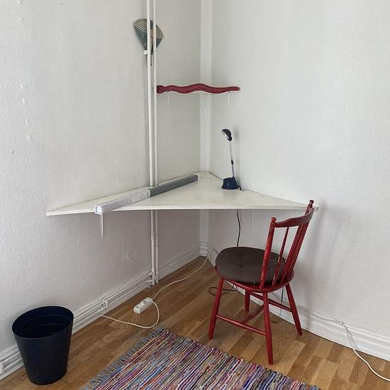 Rummet ligger lite avskilt i lägenheten, där jag pensionerad änka och psykolog med utflugna barn bor. Vi delar kök. El och internet ingår. Har sedan jag blev änka hyrt ut till studenter, och det har fungerat bra. Rummet har en 120 cm loftsäng och egen garderob alldeles utanför rummet. Lägenheten ligger i Linnéstaden. Önskar kvinna som hyresgäst. Serviceavgift för hyresgäst: 247