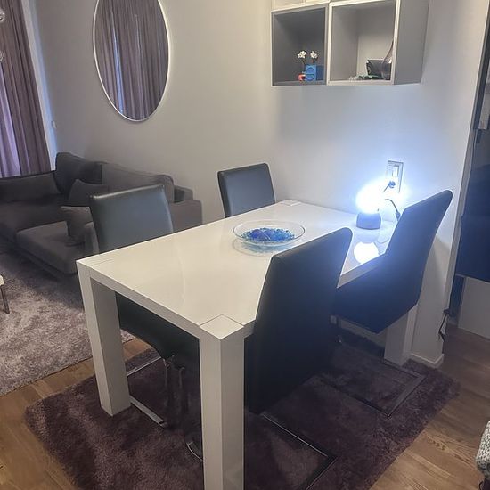 Nyproduktion Möblerad lägenhet 35kvm Tvättmaskin diskmaskin torktumlare uteplats Internet ingår . El ingår inte i hyran Lägenheten är anpassad för en person Rökning är förbjudet och husdjur är förbjudet Serviceavgift för hyresgäst: 311