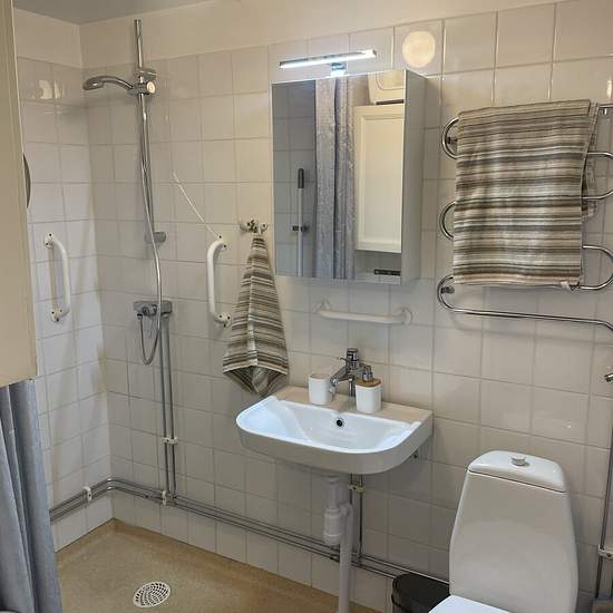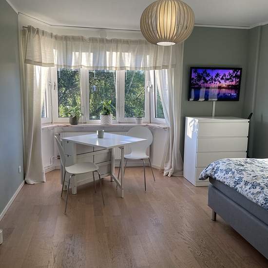 Möjligt att hyra depositionsfritt genom Samtrygg. Månadskostnad: 11270 kr. ________________________________________________________________ Snabbast bokar du visning genom att följa denna länk till Samtrygg: Här hittar du även fler bilder och mer info. ________________________________________________________________ Nyrenoverad, 1 rumslägenhet, med litet kök/pentry som är 1,5 år gammalt, ny mikrovågsugn, kyl, löstagbar induktionshäll, dusch med toalett som är handikappsvänlig. Mycket bra förvaringsutrymme, ELFA system längs väggen. ...