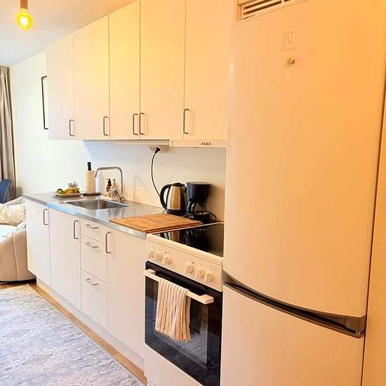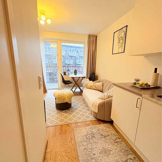 Ett rum och kök med öppen planlösning och stort badrum (med kombinerad tvätt-och torktumlare) och balkong med utsikt till nybyggd park. Beläget i Telefonplan /Midsommarkransen (t-bana röda linje, på 3-4min tar du dig till Södermalm) i nyproducerad byggnad. El och vatten ingår i hyran. Hyrs möblerad. TV och bredband ingår i möbleringen samt basal köksutrustning. 5e våning med hiss. Uteplats och cykelrum finns i huset. Nära till mataffärer och stort utbud av restauranger i närområdet, samt natur och grönska. Hyr ut lägenheten pga. jobb i en an...