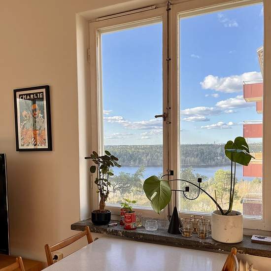 Högst upp på vackra Klubbacken med utsikt över vatten och stad, en väldigt lugn plats med mycket vackra promenadstråk just utanför dörren och väldigt nära till vatten och bad. Lägenheten är 40kvm med ett litet sovrum, stort öppet vardagsrum med massvis av ljusinsläpp och ett nytt modernt kök. Utanför huset finns en trappa som leder dig ner till tunnelbanan efter en ungefär 7 minuters promenad, även där- i centrum finns en väldigt bra ICA, Apotek och frisörer. Har sedan juli 2025 bott tillsammans med min flickvän och haft den uthyrt priv...