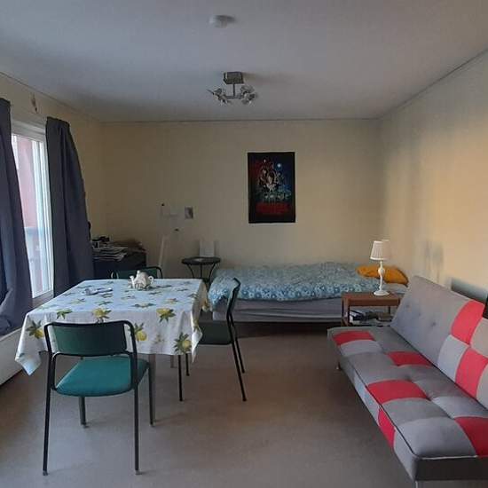 Jag hyr ut min lilla etta med kokvrå på grund av utlandsstudier under en termin. Den ligger ca. 15 minuter söder om Handens station till fots, i ett lugnt område omgivet av förskola, ungdomslägenheter, radhus och naturområden. På morgnarna går en buss hela vägen in till Gullmarsplan från busshållplatsen bara några meter hemifrån. Lägenheten hyrs ut möblerad fram tills att jag är tillbaka i december. Vatten och värme ingår i hyran. Min genomsnittliga kostnad för elen ligger på ca 400 kr i månaden. Just nu finns det bredband i lägenheten o...