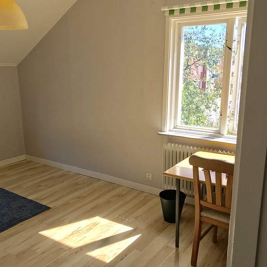 Bild avser rum 4 övre våning. Rum finns i olika storlekar (ca 8-16m2) Huset har tre våningsplan med rum och wc finns på samtliga. Beläget endast 50 meter från Haparanda centrum och 10 m till Svefi. IKEA 850 meter. Busshållplats 75 meter. Gemensam nyrenoverat bad wc och kök. Tvätt och torkmöjligheter i källaren. Wc på varje våning. Kodlås till ytterdörr för extra säkerhet. El vatten värme samt Wi-Fi ingår i hyran OBS! Priset avser Per person/natt Serviceavgift för hyresgäst: 198
