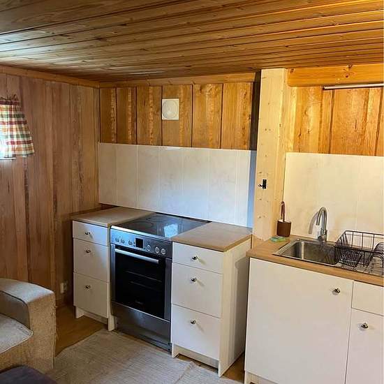 2 rum och kök. Vardagsrum och kök i öppen planlösning. Lgh är i halvkällare. Delvis möblerad men kan tas bort om så önskas. Stor trädgård med odlings möjligheter. Elkostnad tillkommer. Modern spis och ugn. Bastu finns också.