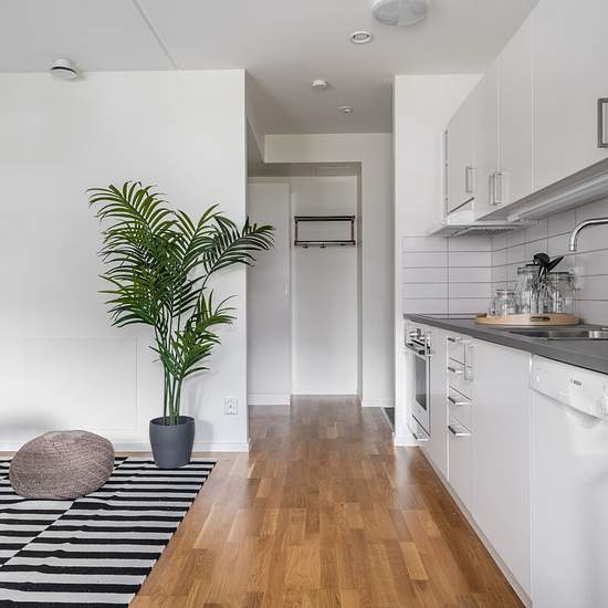 Inflyttningsdatum kan diskuteras. I detta kvarter som byggdes och stod klart för inflyttning 2019 erbjuder vi en variation av lägenhetsstorlekar med fokus på 1-3 rum. Bostäderna är väl genomtänkta med smarta planlösningar. Samtliga rum har ekparkett och ljusa väggar, vilket bidrar till ett fint ljusflöde. Köket har vita släta luckor och en grå bänkskiva med generösa arbetsutrymmenoch bra förvaring. I samtliga lägenheter finns diskmaskin, hällspis samt mikrovågsugn. Badrummen är kaklade med klinkergolv och har spegelskåp, duschvägg i glas, h...
