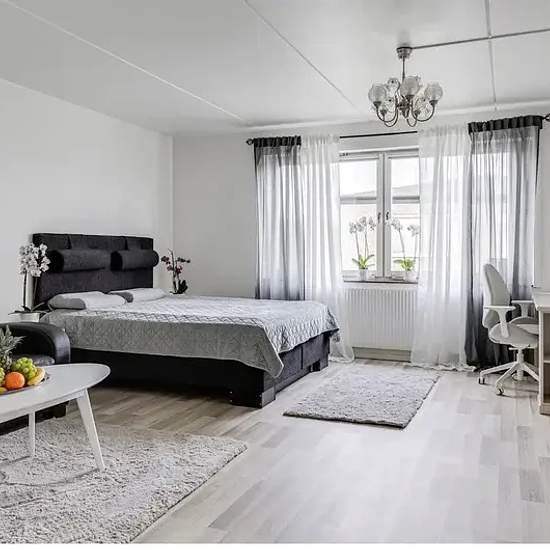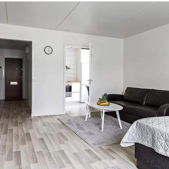 Lägenheten ligger mycket nära kollektivtrafik, endast fem minuters gångavstånd. Det är även nära till stora mataffärer, cirka 20 minuter till fots. Wi-Fi och parkering ingår i hyran (parkering gäller endast om du har egen bil registrerad i ditt namn).