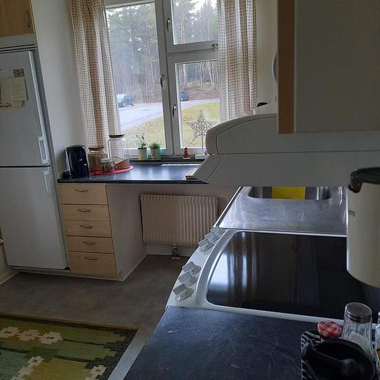 Trevlig ljus etta på markplan med uteplats. Kök med plats för ett lagom stort matbord, ljus köksinredning fönster i två väderstreck. Vardagsrum med sovalkov. Badrum med fönster och förberett för att sätta in en tvättmaskin