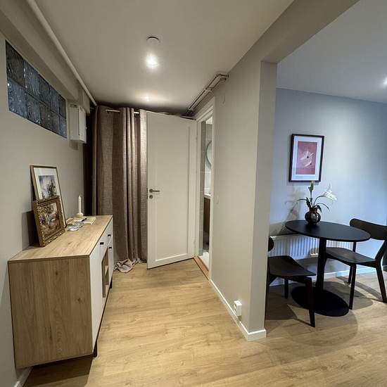 Helt ny och luftig studiolägenhet på nedre plan med egen ingång med digitalt lås. Hyr ut en möblerad studiolägenhet där allt du behöver finns. Nära Södertörns högskola, Karolinska Huddinge och Stockholms city. Lägenheten ligger på nedre plan i ett friliggande hus, men du delar inga ytor med oss som bor i huset förutom uppfarten till huset. Du har en egen ingång med liten uteplats. Lägenheten är: • Fullt möblerad med dubbelsäng, mysig soffa och matplats • Öppen planlösning med öppen spis • Förvaring med garderob, hyllor och byrå Kök ...