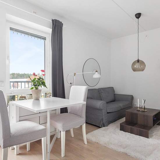 Ljus och fin möblerad enrumslägenhet med öppen planlösning i centrala Huddinge uthyres i 6 månader. Gångavstånd till pendeltåg. Serviceavgift för hyresgäst: 595
