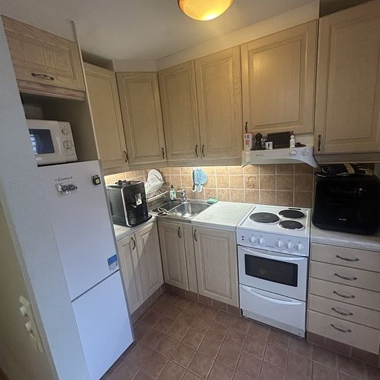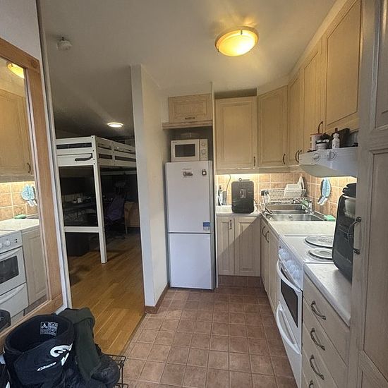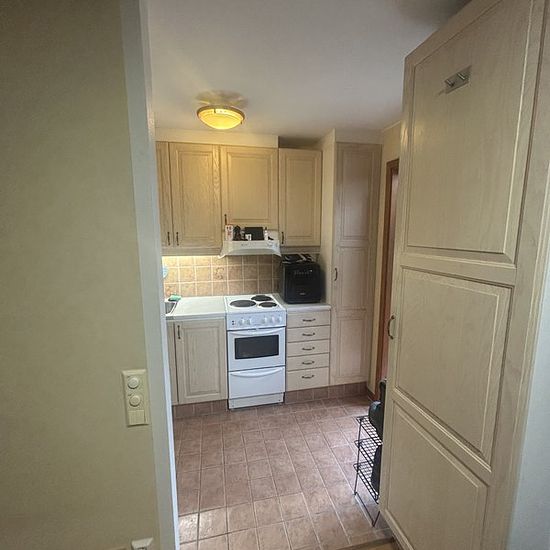 Möjligt att hyra depositionsfritt genom Samtrygg. Månadskostnad: 8970 kr. ________________________________________________________________ Snabbast bokar du visning genom att följa denna länk till Samtrygg: Här hittar du även fler bilder och mer info. ________________________________________________________________ En fin och smidig etta med gångavstånd från Huddinge Centrum. Ligger i lugnt villaområde i Fullersta dit du går på 10 minuter från Huddinge station (Pendeltåg). Finns även bussar som passerar nära där du kan åka till Fruäng...