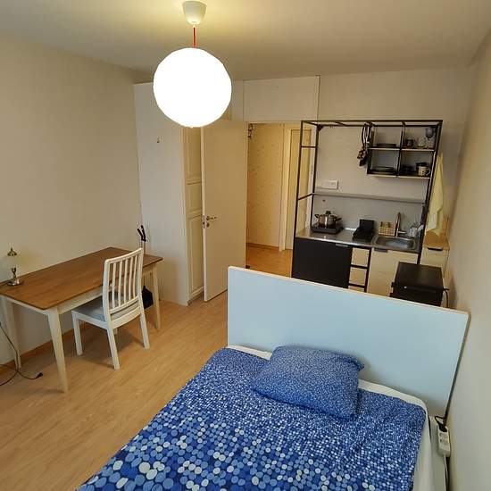 Uthyrningsdel i en bostadsrätt med egen separat ingång. 4 minuters promenad till buss och pendeltåg Rummet har ett pentry med kylskåp, mikrovågsugn och induktionshäll. Egen dusch och toa nyrenoverat. Internet, värme, varmvatten och el ingår i hyran. Hyr ut den 1 år med möjlighet till förlängning. Möjlighet att låna p-plats vid behov. Hyresgästen måste teckna egen hemförsäkring. Serviceavgift för hyresgäst: 377