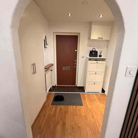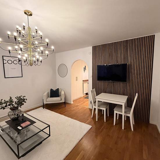 Welcome to a cozy and fully furnished 34 m² studio apartment located in quiet and pleasant Kallhäll – perfect for tourists who want a comfortable, peaceful stay close to nature while still having easy access to Stockholm. The apartment is bright and homely, featuring a private balcony facing greenery and nature, ideal for morning coffee or relaxing evenings. Inside, you’ll find a comfortable velvet bed sofa, perfect for a solo traveler or a couple. The train station is only about a 4-minute walk away and takes you to Stockholm city in appr...