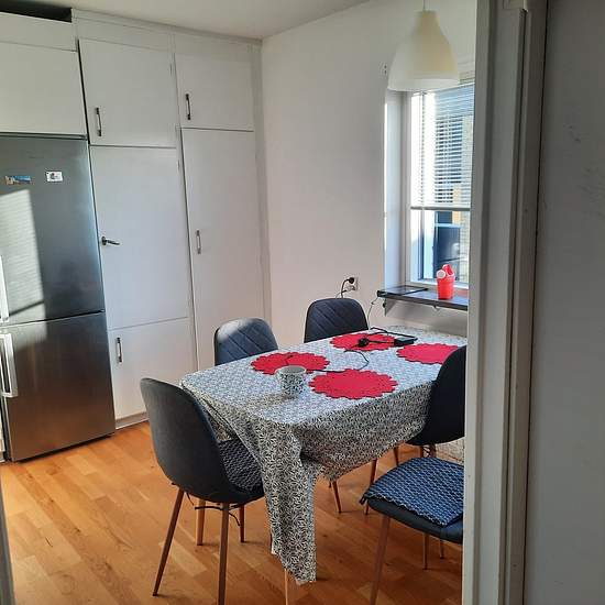 Renting out one room in a 3 room apartment located in 3rd floor near Ekhagen Student Apartments, one of the nicest community in Jönköping. Furnished but it can be customised. Nice garden view, lake view from balcony. You have access to part of living room, yoga space, private TV, kitchen and kitchen tools, cycle room, clothes, washing room. There is large space for clothes and personal stuff, very spacious apartment. There is a young professional in the other room 32 years calm and quiet person. Ocassionally Guest and partner allowed. No s...
