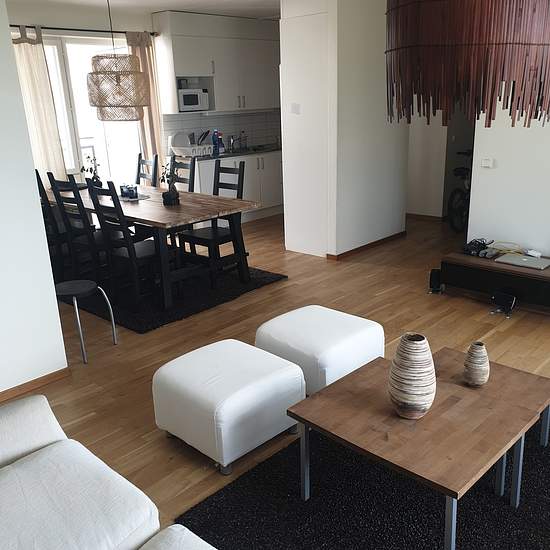 A nice spacious apartment of about 100 m2 with open floor plan and plenty of light. Great for students studying at KTH, DSV or Stockholm University. The rent includes electricity, internet, heat and water. References are available. Best regards, M Serviceavgift för hyresgäst: 321